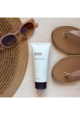 Die Ahava Deadsea Water Mineral Foot Cream 100 ml ist eine reichhaltige Fußcreme und eine effektive Feuchtigkeitspflege, um raue Füße und Fußsohlen zu glätten und zu erneuern. Die allergiegetestete und parabenfreie Fußcreme ist für alle Hauttypen geeignet, sie ist auch für die empfindliche Haut zu empfehlen. Wohltuende Mineralien aus dem Toten Meer und natürlichen Pflanzenextrakten erneuern die raue Haut, schließen Hautrisse und pflegen die Füße geschmeidig und zart. Die Mineral Foot Cream lindert Beschwerden, sie unterstützt die Hauterneuerung und hilft der Haut mit antibakteriellen und antifungiellen Eigenschaften.