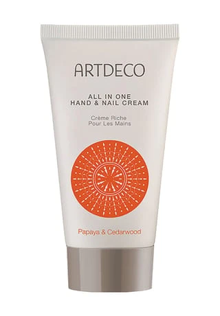 Geschmeidig weiche, fruchtig duftende Hände und das jederzeit Mit der All In One Hand und Nail Cream verwöhnst Du Deine Hände und pflegst sie reichhaltig. Die angenehme Textur zieht schnell ein und pflegt die Haut mit hochwertigen Inhaltsstoffen. Selbst rissige und strapazierte Nagelhaut wird sofort geschmeidig und mit wertvoller Feuchtigkeit versorgt. Der exotisch-frische Duft nach Papaya und Zedernholz rundet das Hand-Pflege-Erlebnis ab und belebt Deine Sinne. Für traumhaft weiche, gepflegte Hände! Die wichtigsten Inhaltsstoffe und ihre Wirkung: Mandelöl versorgt Deine Haut mit wertvollen Vitaminen und Nährstoffen für ein intensiv gepflegtes, weiches und angenehmes Hautgefühl. Glycerin erhöht die Hautelastizität und unterstützt den hauteigenen Feuchtigkeitshaushalt. Mangobutter unterstützt die Regeneration der Hautzellen und sorgt auch noch nach Stunden für ein weiches und geschmeidiges Hautgefühl. Papaya Extrakt verfügt über eine nährende und regenerierende Eigenschaft und pflegt so die Haut. Zedernholzöl hat ein angenehm holzig-warmes Aroma und umschmeichelt die Sinne.