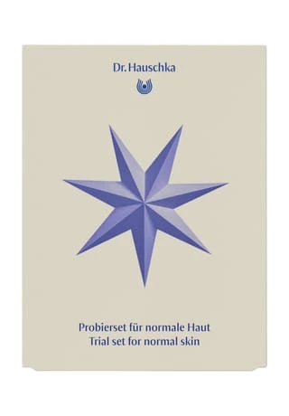 In weihnachtlich gestalteter Limited Edition: Dr. Hauschka Probierset für normale Haut. Im Set enthalten: Gesichtswaschcreme 10 ml: reinigt auf milde Weise und verfeinert die Poren. Gesichtstonikum 10 ml: aktiviert die Stoffwechseltätigkeit der Haut und schenkt ein frisches Hautgefühl. Quitten Tagescreme 5 ml: schützt die Haut vor Umwelteinflüssen und gleicht ihren Feuchtigkeitshaushalt aus.