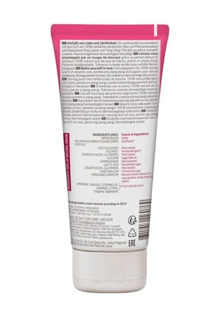 Umhüllen Sie sich mit Liebe und Zärtlichkeit. Die Aroma Shower Love verwöhnt Ihre Sinne mit einem Duft mit Damaszener Rose, Jasmin und Ylang-Ylang. Die Aroma-Cremedusche weckt ein Gefühl von Harmonie und unterstützt Ihr natürliches Wohlbefinden mit der Kraft von 100 % natürlichen ätherischen Ölen und Pflanzenextrakten. Schließen Sie Ihre Augen, atmen Sie tief durch und lassen Sie sich vom sanft-blumigen Duft berühren, während unsere biologisch abbaubare Rezeptur (gemäß OECD) Ihre Haut weich und geschmeidig pflegt. Milde Tenside auf pflanzlicher Basis reinigen Ihre Haut sanft.