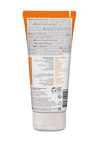 Die Vitalisierungsdusche Sanddorn stimuliert die Sinne mit einer feinen Duftkomposition aus sonnenverwöhnter Orange, Mandarine und Grapefruit. Die besänftigende Mandarinenote und die anregenden Grapefruitkomponente sorgen für einen natürlichen Gute-Laune-Duft, der schon morgens für ausgeglichene Stimmung sorgt. Milde Zuckertenside reinigen die Haut besonders sanft. Gleichzeitig pflegen wertvolle Pflanzenöle die Haut. Reich an mehrfach ungesättigten Fettsäuren bewahren reines Sanddorn- und feinstes Sesamöl die natürliche Feuchtigkeit der Haut und schützen sie so vor dem Austrocknen für ein samtweiches Hautgefühl.